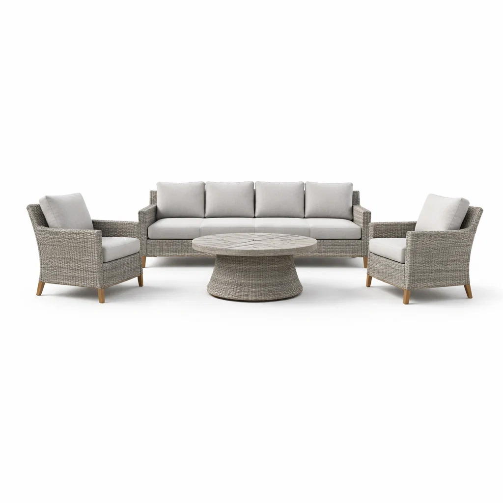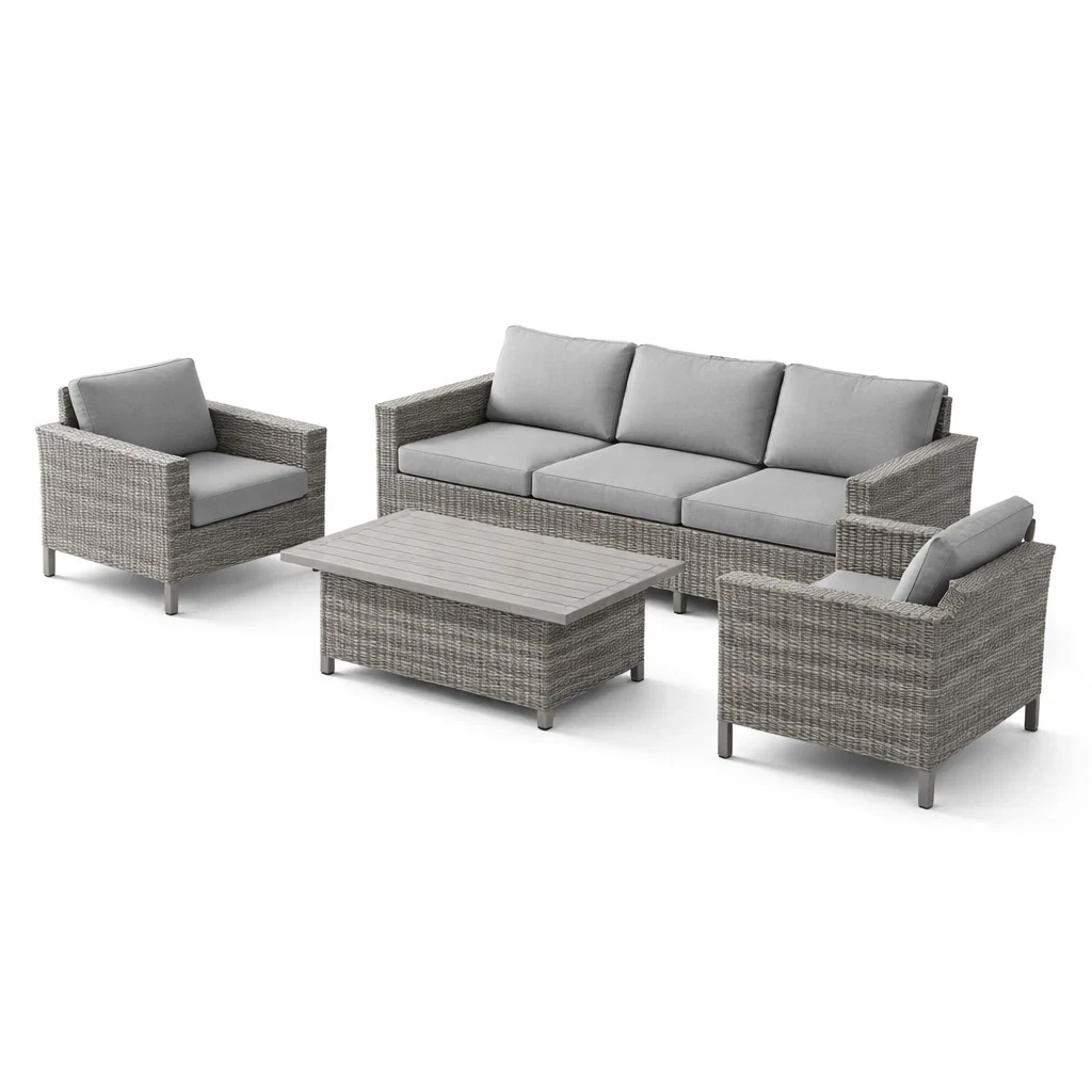 Ensemble de canapés extérieur en rotin avec coussins gris clair