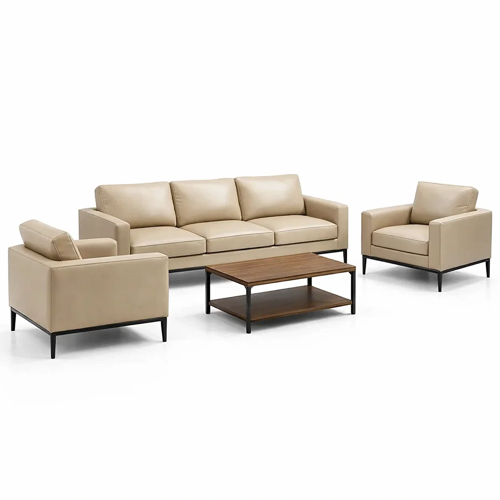 Ensemble de canapés et fauteuils en cuir synthétique beige