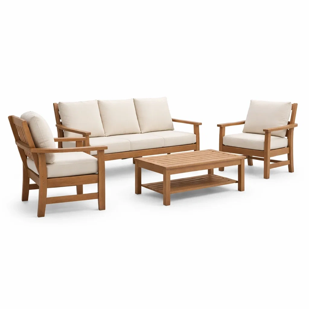 Ensemble de canapés de jardin en bois avec coussins beige