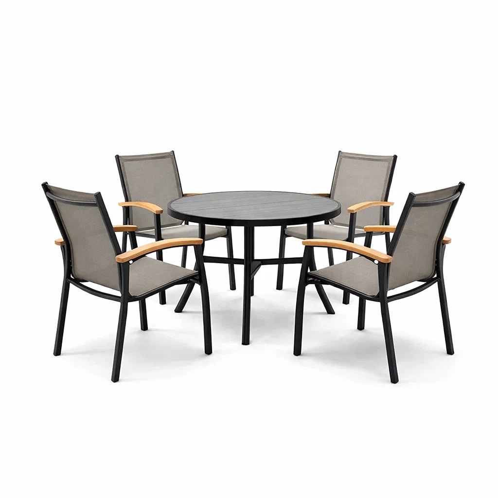 Ensemble table et chaises en aluminium avec chaises en textilène