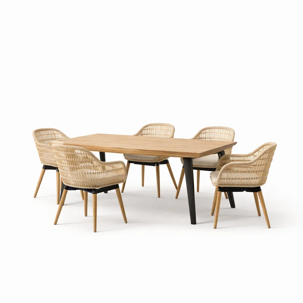 Ensemble table et chaises en bois et résine tressée avec table ronde