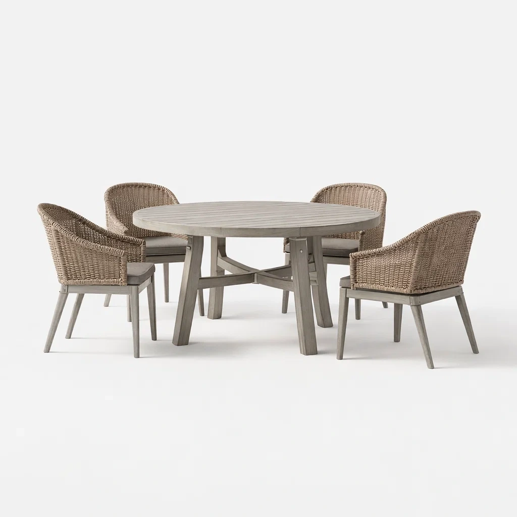 Ensemble table et chaises en bois d'acacia gris pour extérieur