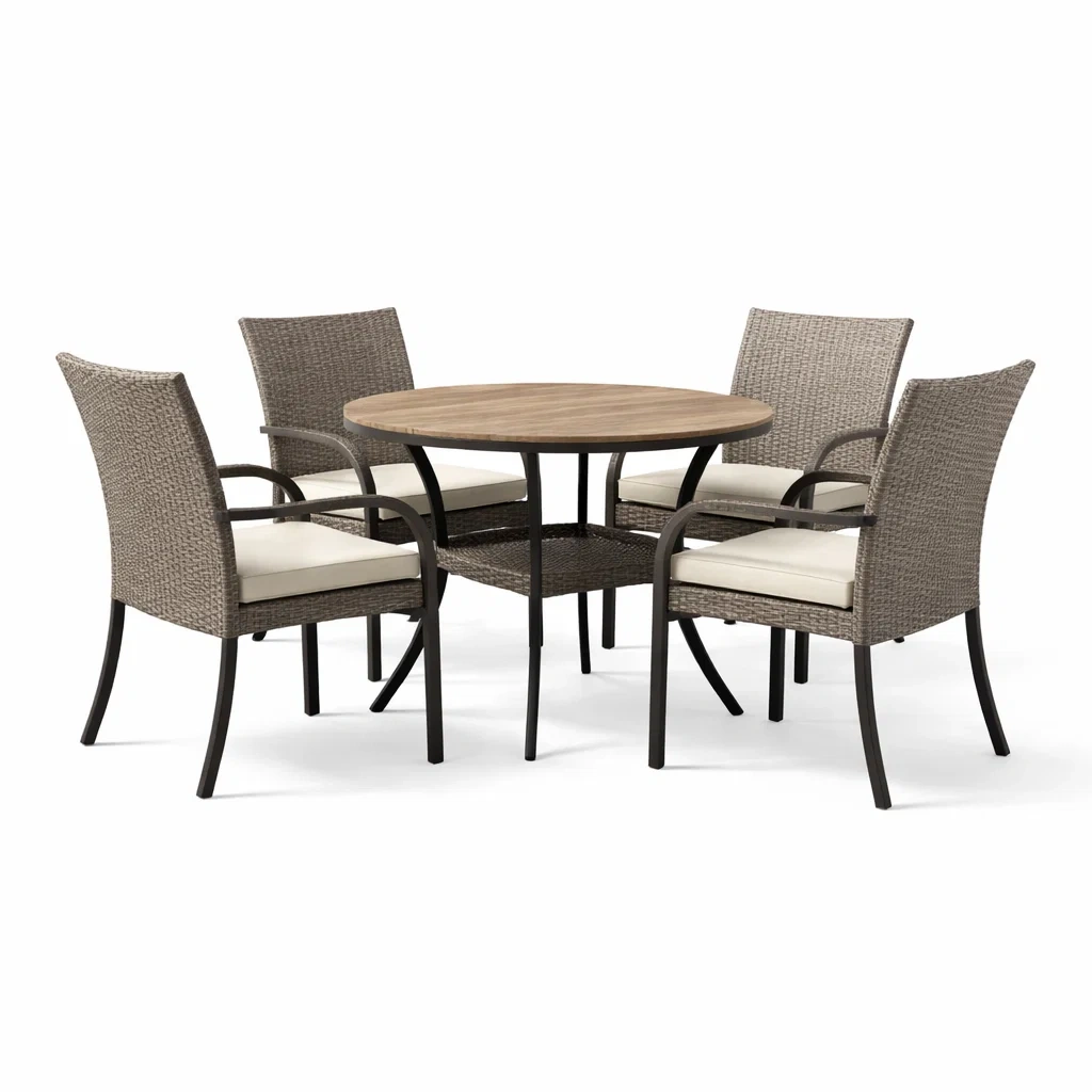 Ensemble table et chaises avec table ronde en bois et chaises en rotin synthétique