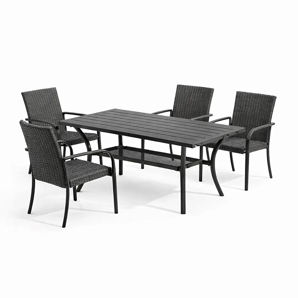 - Chaises : Résine tressée avec cadre en aluminium